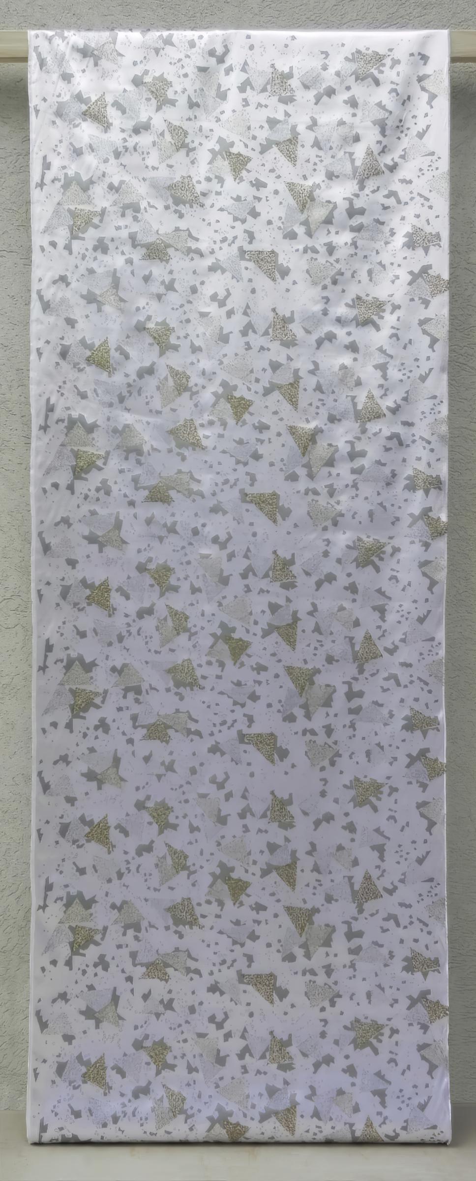 A Főiskola elvégzését követően lakástextil mintacsaládokat terveztem és kiviteleztem saját műhelyemben. Könnyű, áttetsző len és vastagabb pamut anyagokból függönyök, ágytakarók és párnák készültek grafikai mintázattal, szitanyomással.