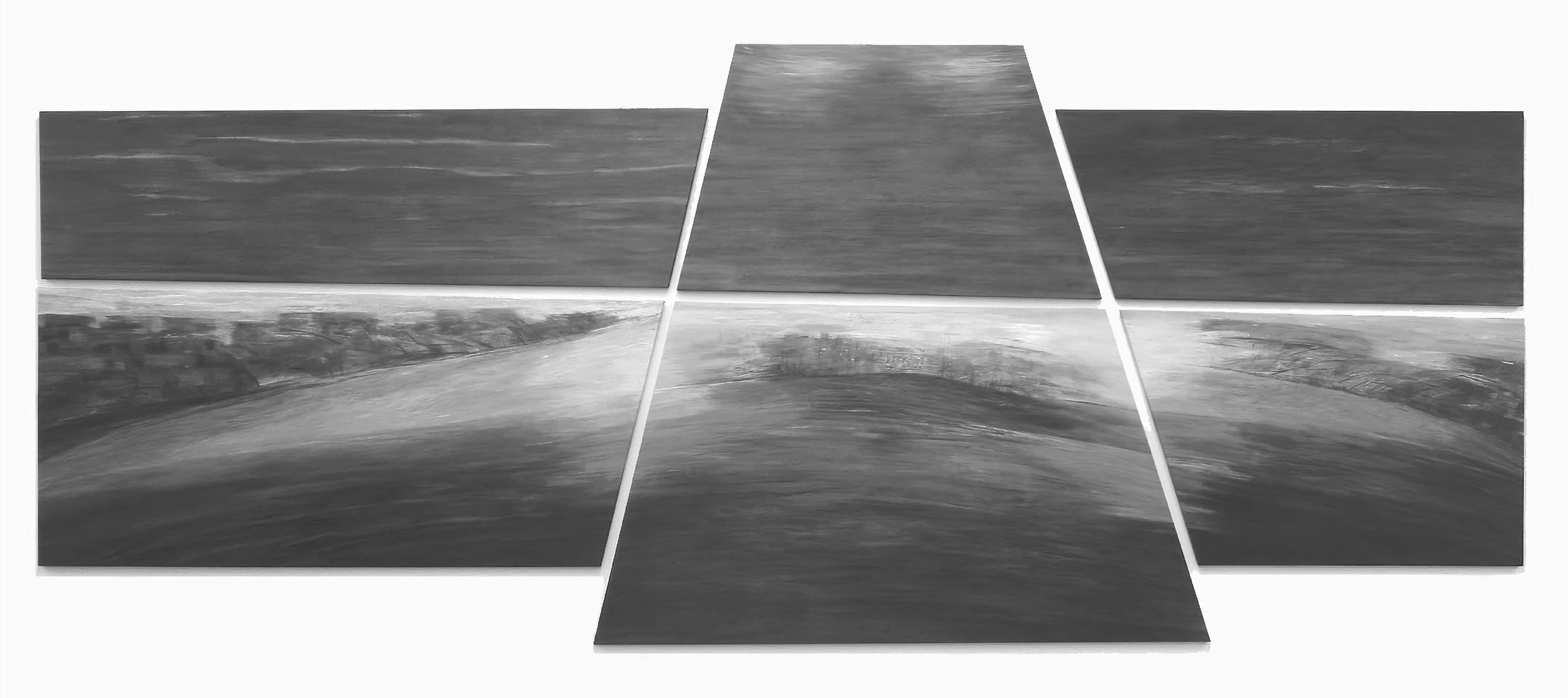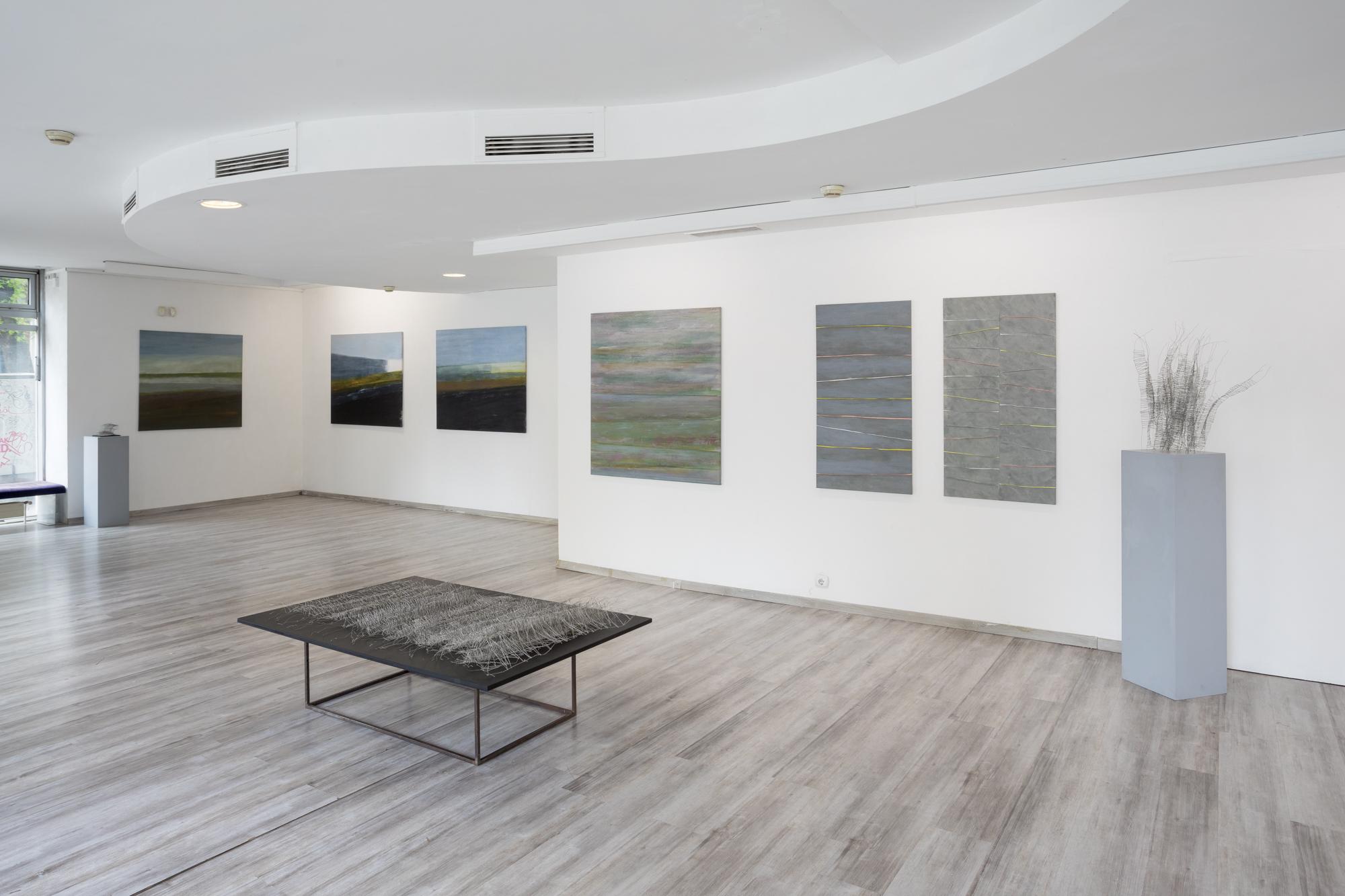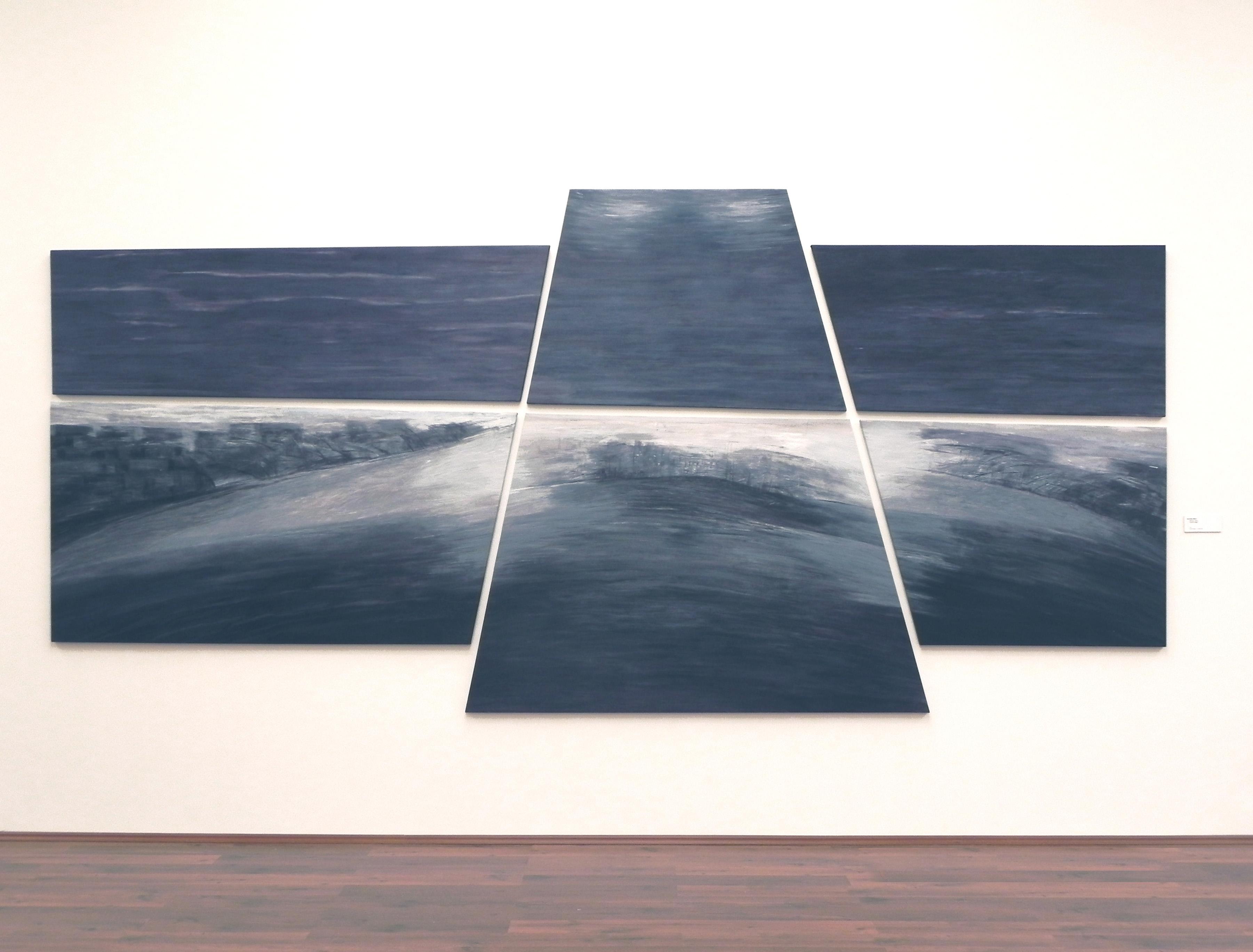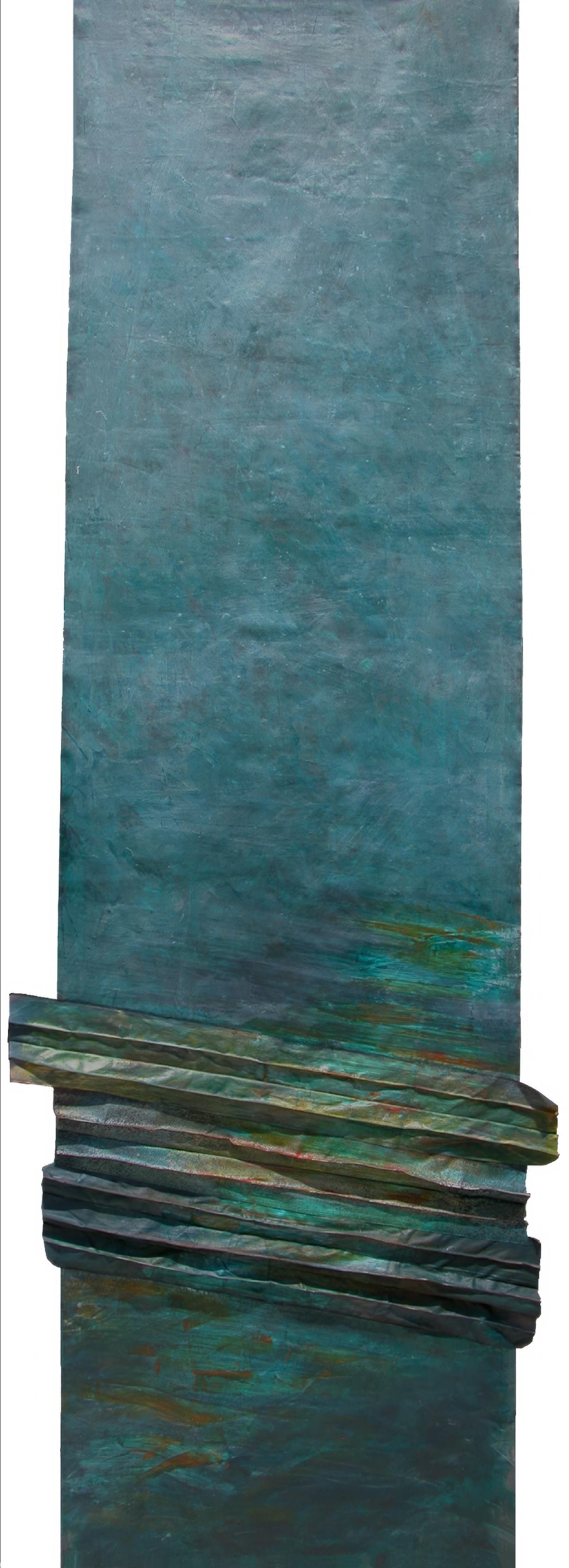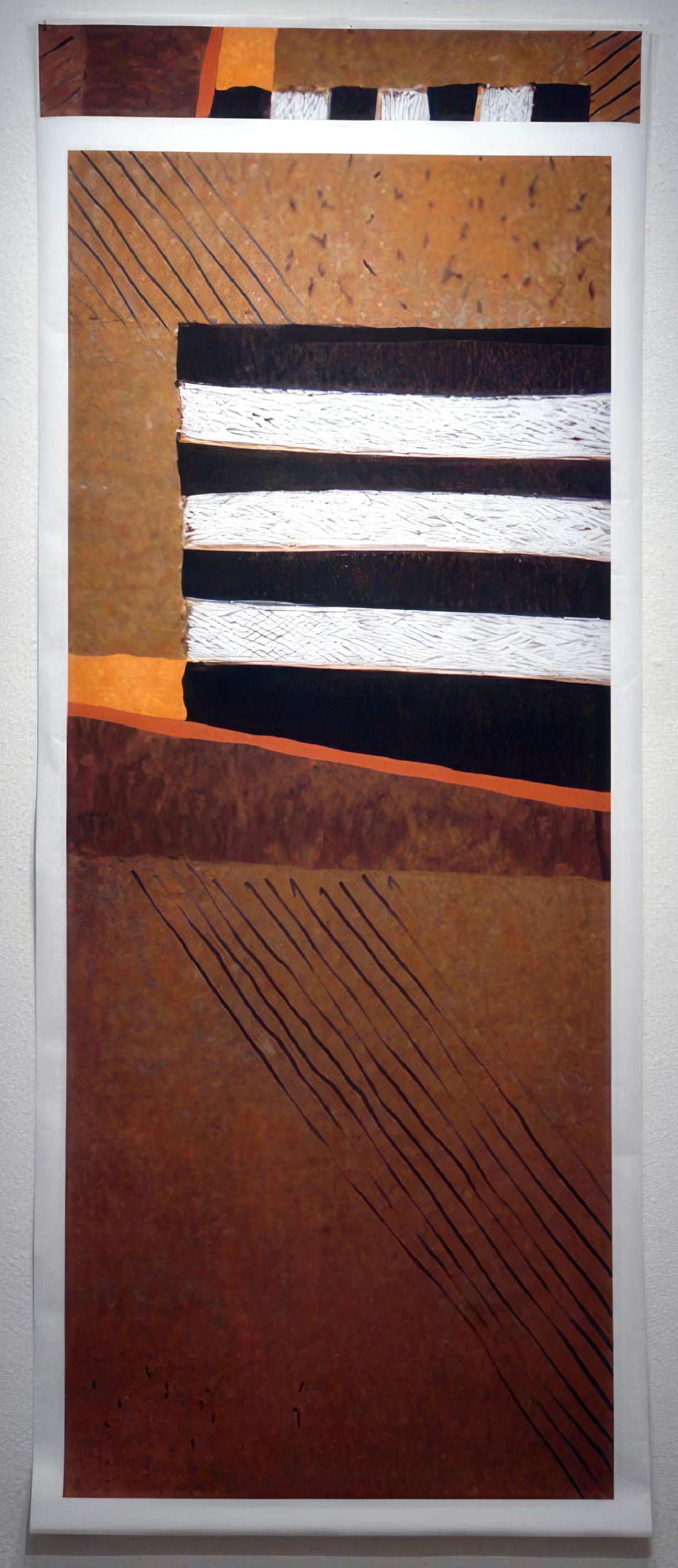 Nagyméretű, selyemre festett munkáimhoz egyedi kialakítású kereteket használtam. A KIJÁRAT1’ és KIJÁRAT2 három, illetve két elemből áll; az ÉJSZAKAI UTAZÁS című képem a Debreceni MODEM Panoráma kiállítására készült, hat elemből áll, 5,35 méter széles és 2,7 méter magas. Régóta foglalkoztat az utazás mint téma: az út, a természetben és a tájban való elmozdulás, valamint az utazás élményének a valóságon túlmutató értelmezése. Legújabb feszített képeimen a festett felületet kisebb-nagyobb bordázással gazdagítom.