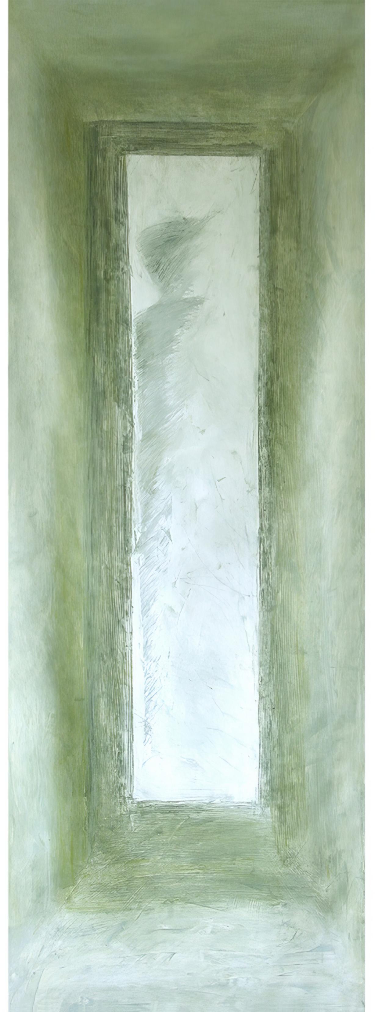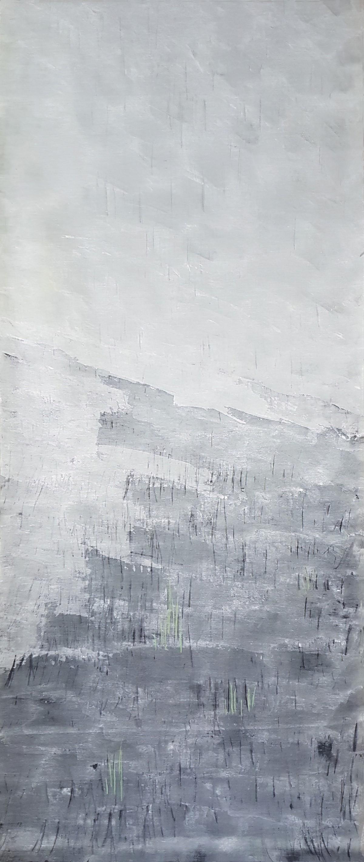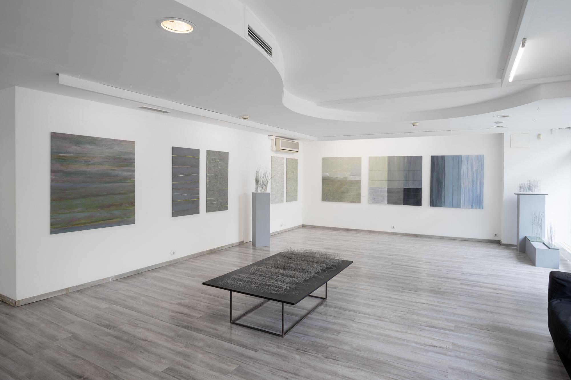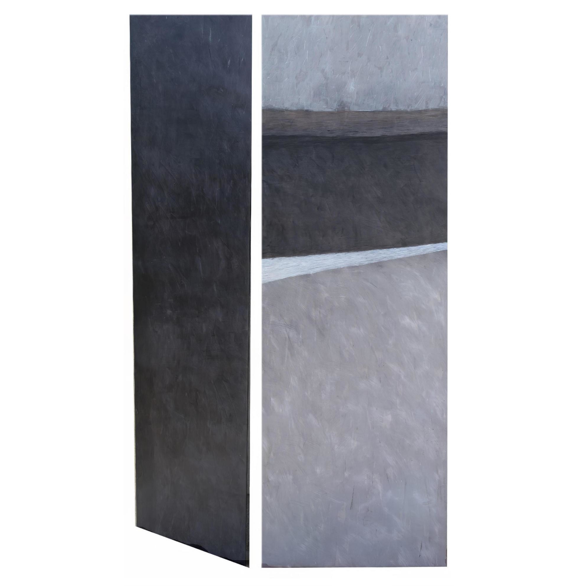Nagyméretű, selyemre festett munkáimhoz egyedi kialakítású kereteket használtam. A KIJÁRAT1’ és KIJÁRAT2 három, illetve két elemből áll; az ÉJSZAKAI UTAZÁS című képem a Debreceni MODEM Panoráma kiállítására készült, hat elemből áll, 5,35 méter széles és 2,7 méter magas. Régóta foglalkoztat az utazás mint téma: az út, a természetben és a tájban való elmozdulás, valamint az utazás élményének a valóságon túlmutató értelmezése. Legújabb feszített képeimen a festett felületet kisebb-nagyobb bordázással gazdagítom.