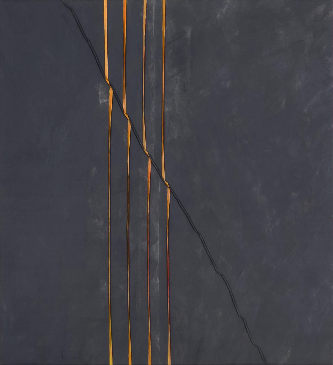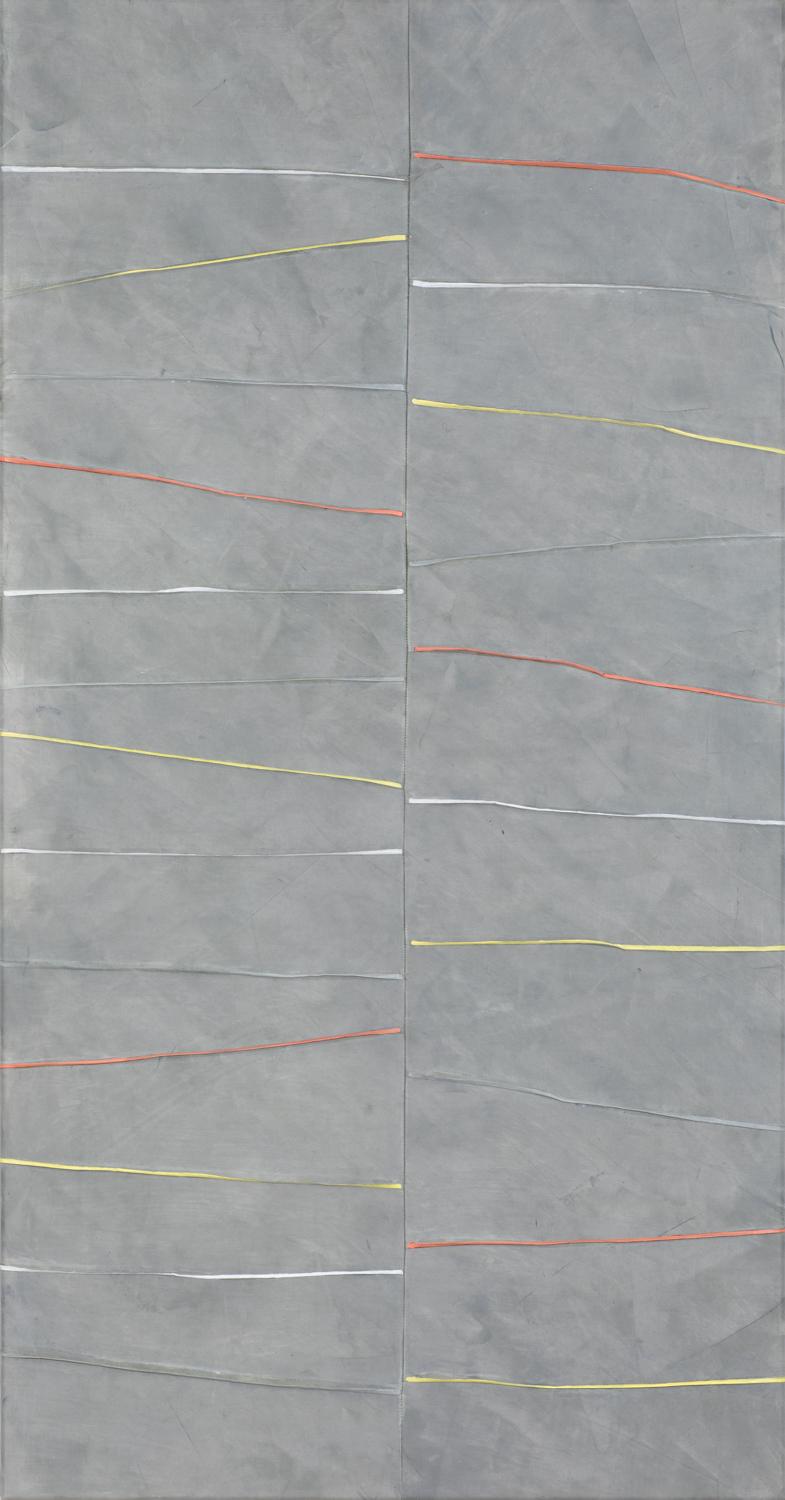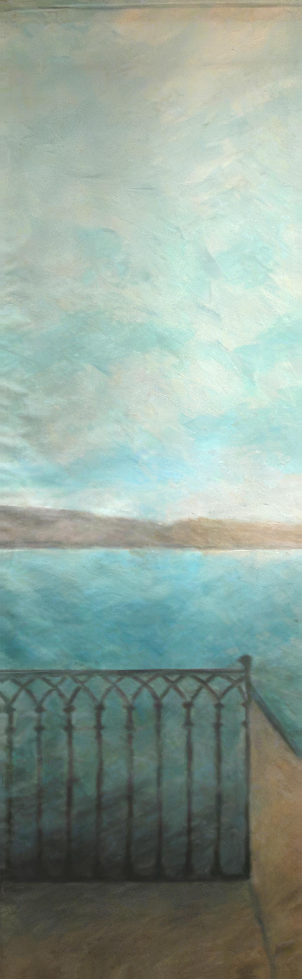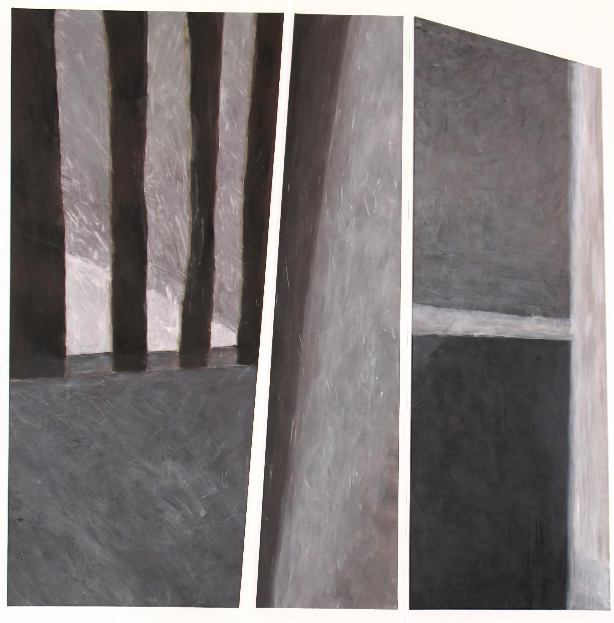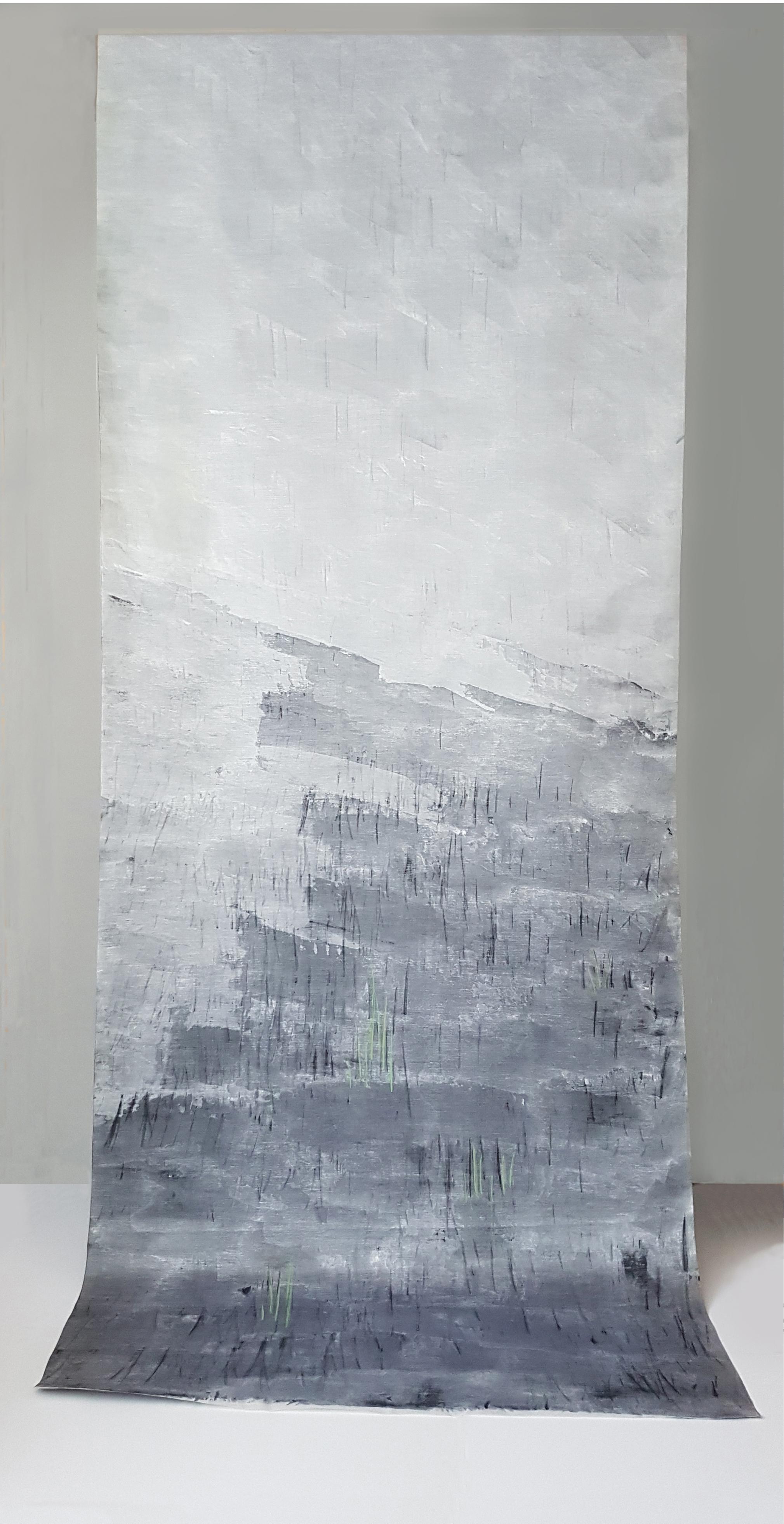 Nagyméretű, selyemre festett munkáimhoz egyedi kialakítású kereteket használtam. A KIJÁRAT1’ és KIJÁRAT2 három, illetve két elemből áll; az ÉJSZAKAI UTAZÁS című képem a Debreceni MODEM Panoráma kiállítására készült, hat elemből áll, 5,35 méter széles és 2,7 méter magas. Régóta foglalkoztat az utazás mint téma: az út, a természetben és a tájban való elmozdulás, valamint az utazás élményének a valóságon túlmutató értelmezése. Legújabb feszített képeimen a festett felületet kisebb-nagyobb bordázással gazdagítom.