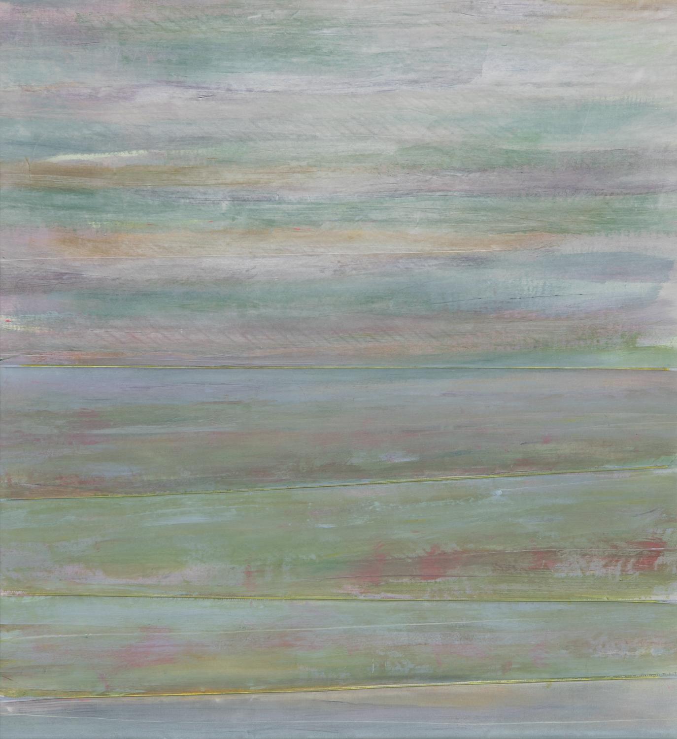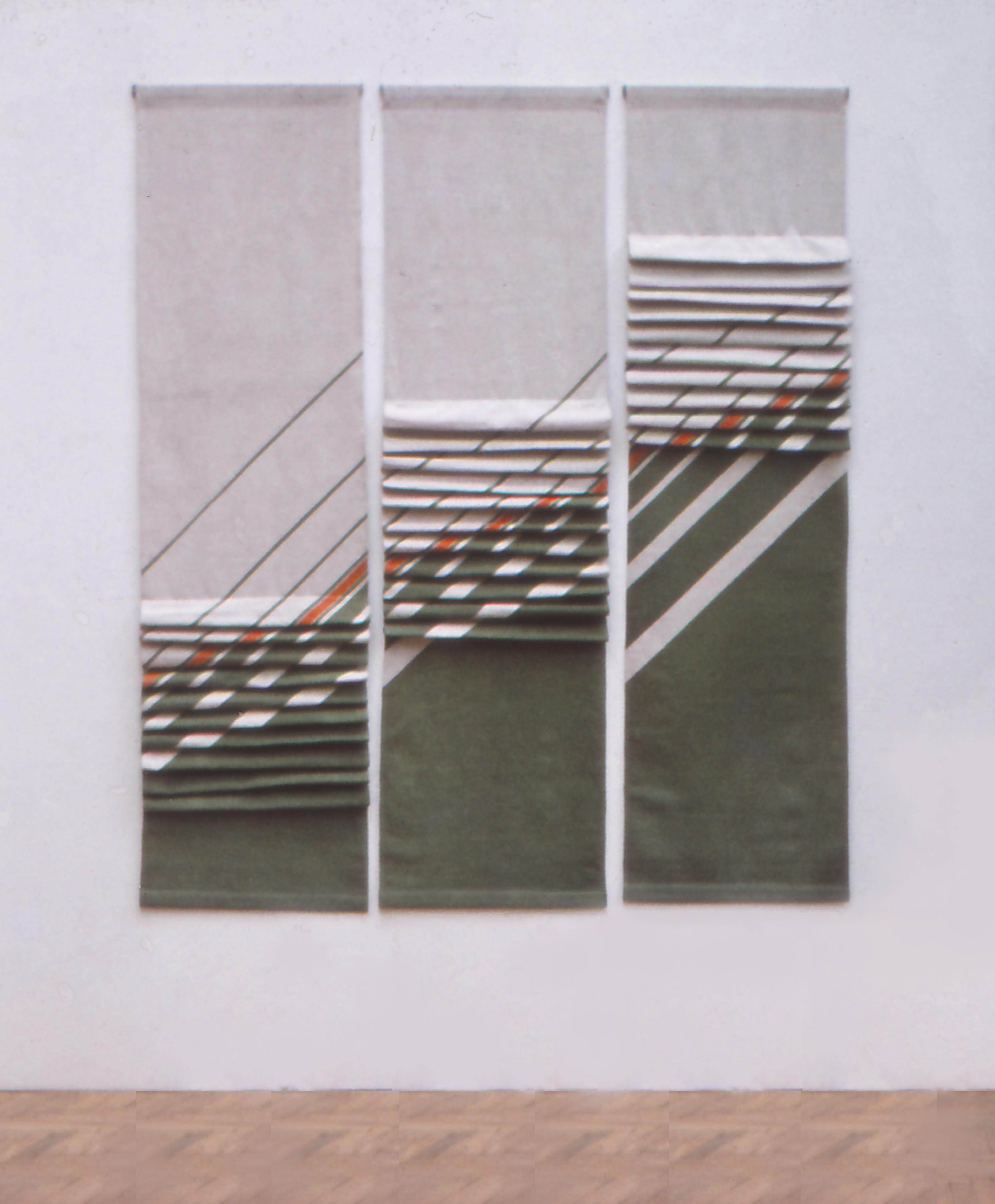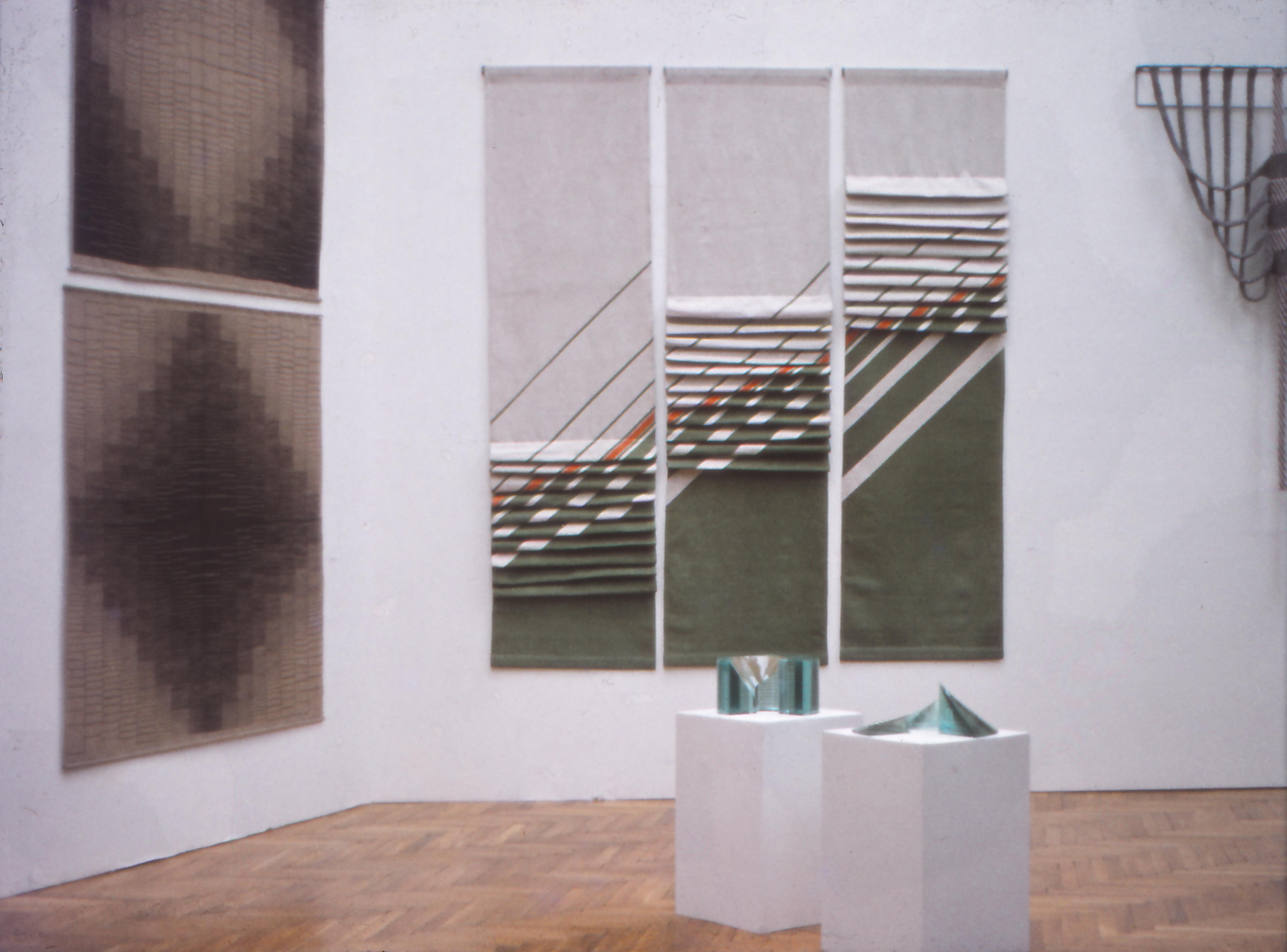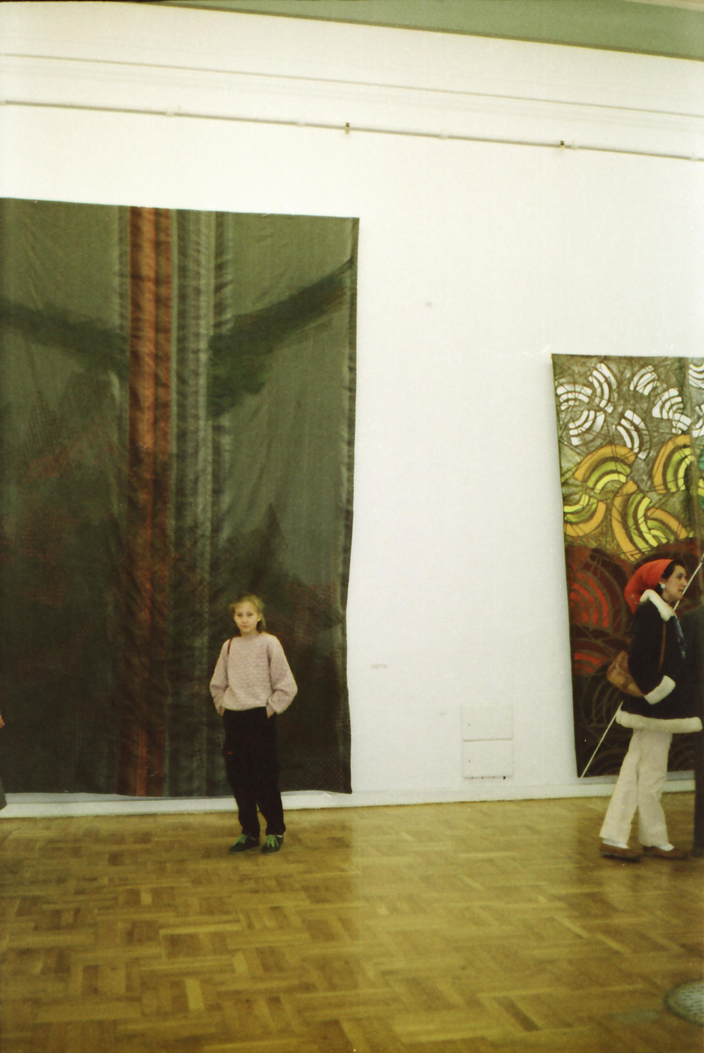 Már a korai festett textilképeken is kísérleteztem a síkból való kimozdulás lehetőségével: gyűrést, hajtogatást, tűzést és rávarrást alkalmaztam a plasztikus hatás érdekében. A szabadvásznas festményeken egy-egy élmény, emlékkép vagy gondolat hangulatát, érzetét próbálom megragadni és rögzíteni a textilfestés speciális technikai lehetőségeivel.